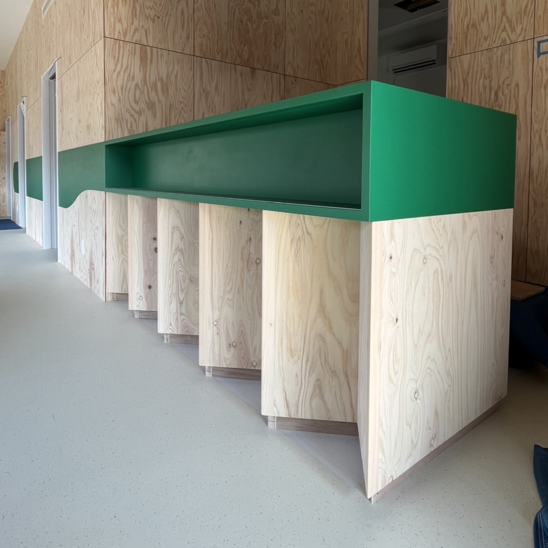 遠目で見ると巨大な歯ブラシの形に見える面白いデザインのカウンターです。