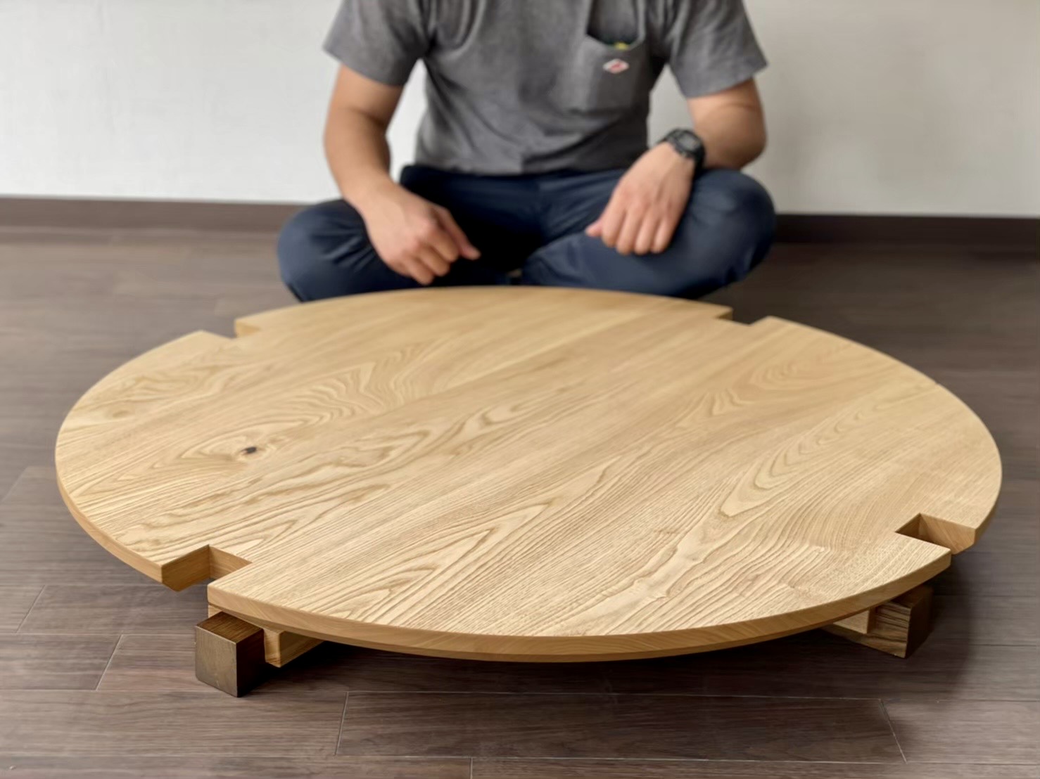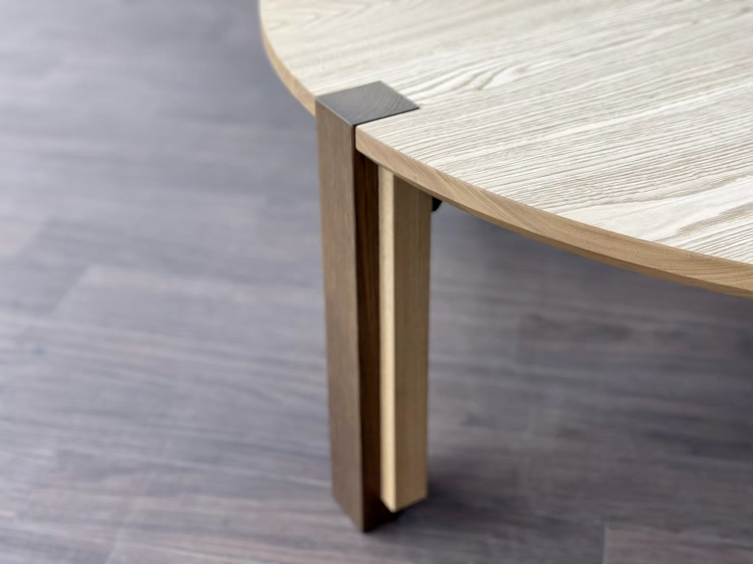 脚の濃い色のストライプラインをアクセントに、空間との統一感を図りつつ、機能面では脚を折り畳んでも使用できる2way仕様のちゃぶ台です。
